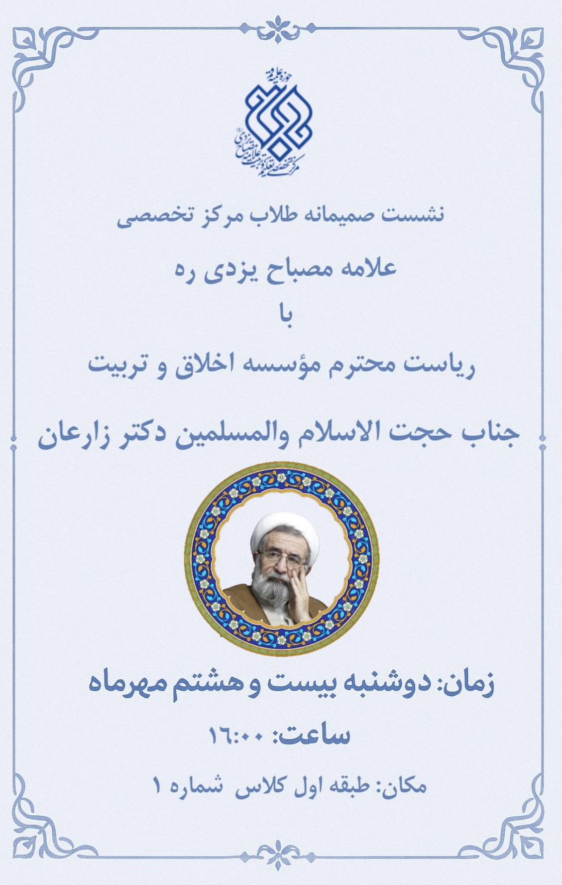 نشست صمیمانه طلاب مرکز تخصصی علامه مصباح یزدی ره با ریاست محترم مؤسسه اخلاق و تربیت جناب حجت الاسلام و المسلمین دکتر زارعان